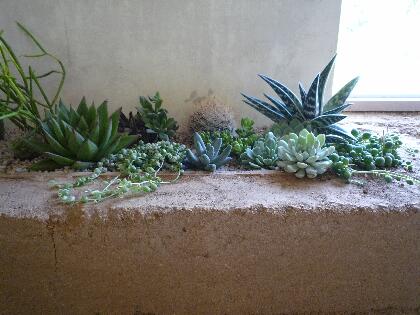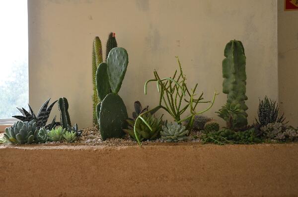 その作品に合わせて、今回は、多肉植物を植え込み、乾燥地帯のオアシスのイメージで植栽してみました。