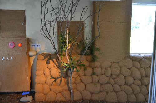 今回の土壁は、会場の十日町周辺の石垣をイメージして作られた作品です。