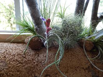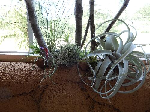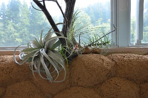 長い廊下の土壁には、ブナの枯れ枝とティランジア(一般的にはエアープランツと言います)をアレンジしました。