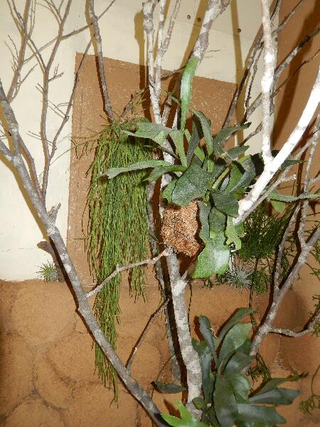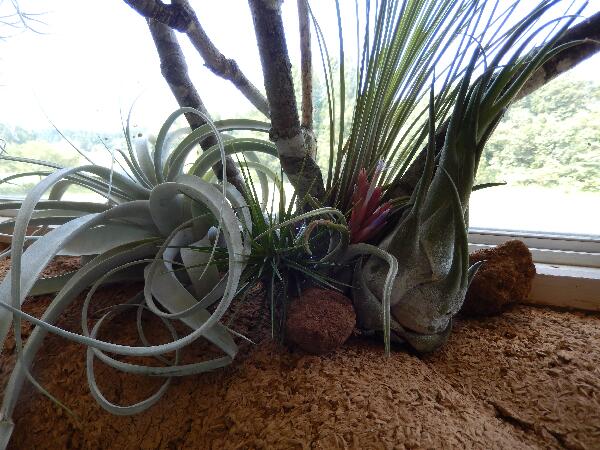 正面には、大きなブナの枯れ枝に、コウモリラン、リプサリス、リネアリスなどをアレンジ。